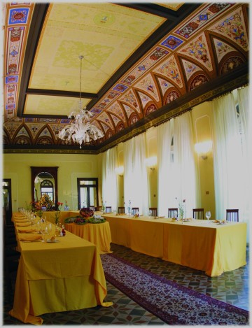 The magnificent ceiling, mirrors and chandeliers make this living room special evoking the magical atmosphere op "Ballo Excelsior"